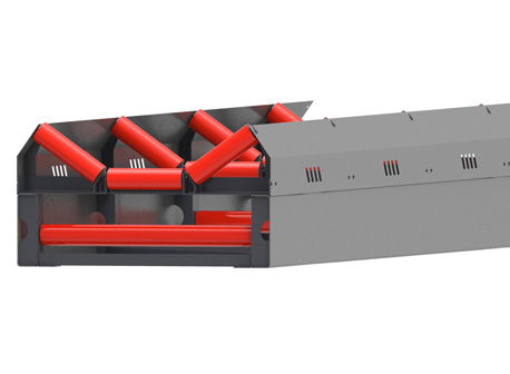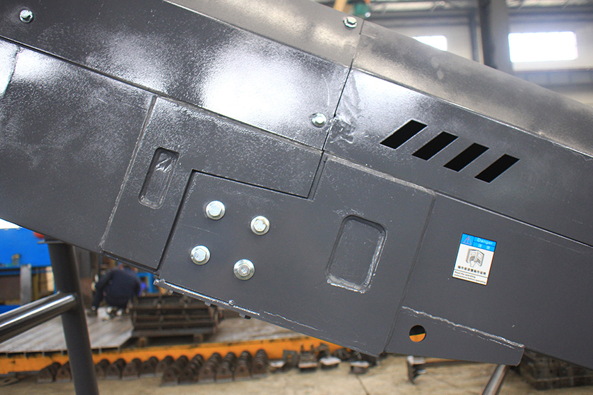 傳統皮帶機一般使用槽鋼和托輥架搭配使用,機架相對單薄。而B6X皮帶機在這一點上做了變革——使用C型鋼代替了槽鋼并配備側護板,基于這個改進,B6X系列皮帶機機架總體鋼性得以大大提升。