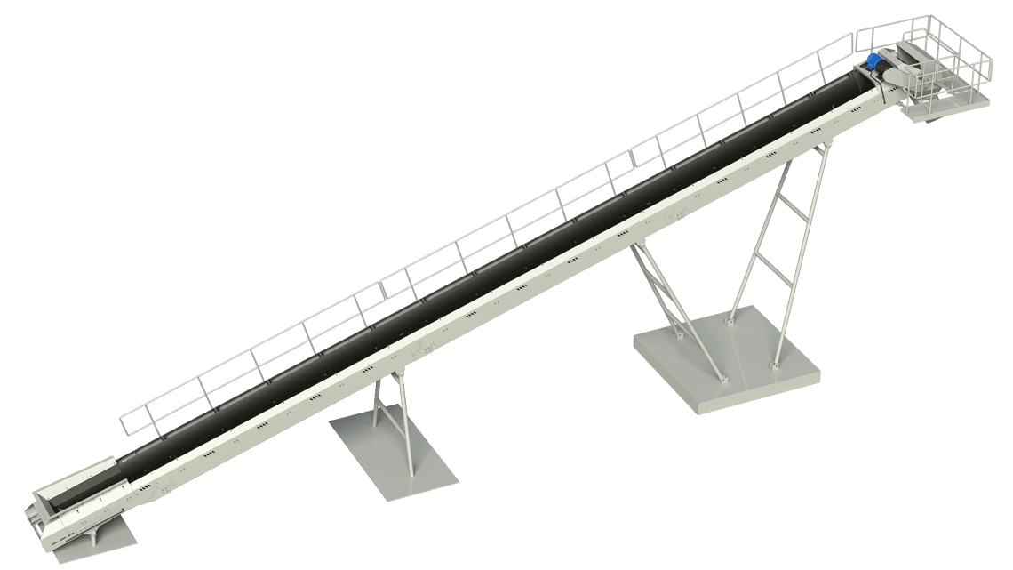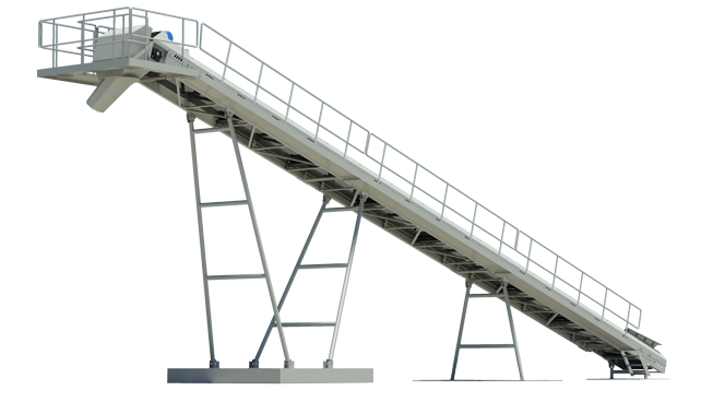 得益于B6X機架的超強鋼性,我們能夠采用長距離頭架設計。基于該設計,料堆半徑是傳統皮帶機的1.5~2倍,非常利于生產過程中落料,且可以有效避免裝載機等機械鏟料時碰損皮帶機支架。